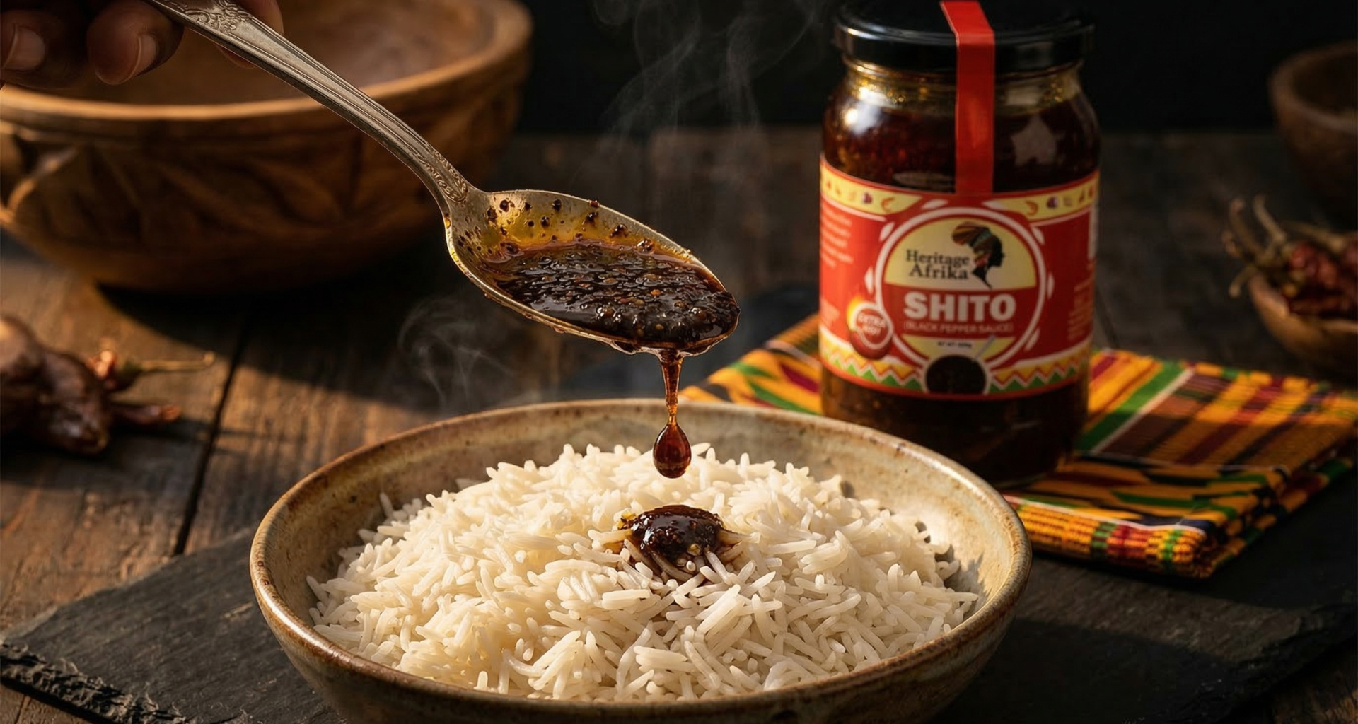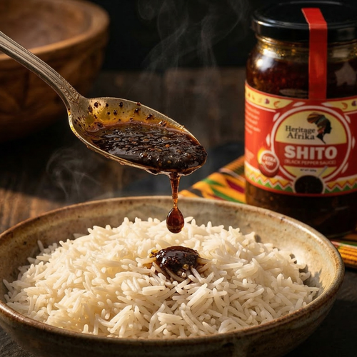 Heritage Afrika Shito Mild is the ultimate Ghanaian hot pepper sauce, rich with fish and shrimp, oil, and an aromatic blend of spices. It's an essential condiment for any West African dish. Perfect for kenkey,...
